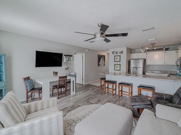 Our New Beach condo favorite!This Peachtree condo is absolutely gorgeous! This unit has been updated from head to toe; new flooring throughout, freshly painted, new countertops, new stainless steel Frigidaire appliances, new furniture and furnishings. This is one of the few units that has a gulf view. The front porch area is huge and decorated beachy. There is also a private back balcony overlooking a preserved area. Did we mention that this unit is being sold completely furnished? Wow! Not only is this unit awesome, the complex is one of our favorites too! Peachtree is a small complex across from the beach. It has just the right amount of amenities to keep fees low,(only $442a month)The location is brilliant! Close to grocery stores, Pier Park and other entertainment. Come See!