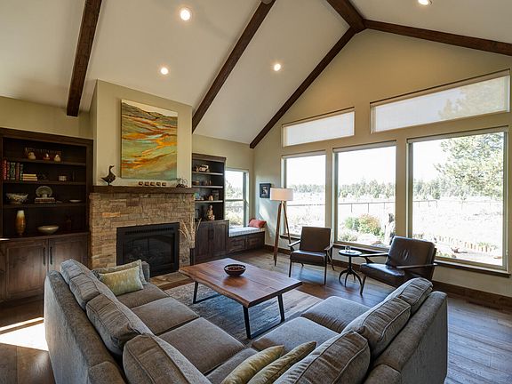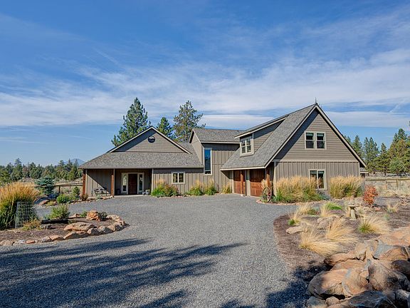 VIEWS of the MOUNTAINS from this 2-year young, custom home on 2.5 acres. Built by one of Sisters premier contractors and situated to take maximum advantage of the mountain views. A welcoming vaulted living room with a propane fireplace, a wall of windows, smart built-ins and exposed beams invite you to sit for hours. The dining area has access to the covered patio with Sundowner shades to extend indoor-outdoor living. The kitchen is a cooks dream with double wall ovens, propane Bosch cook top, Bosch dishwasher, pantry, quartz countertops & island topped with black walnut. Primary bedroom on the main level with hot tub access, tiled walk-in shower, dual sinks and two closets. Powder room and separate laundry room with a handy bench. Upstairs 2 bedrooms, each with walk-in closet. Three heat zones in 2,283 square feet. Oversized garage, fenced backyard with low maintenance landscaping front and back and storage sheds round out this property.