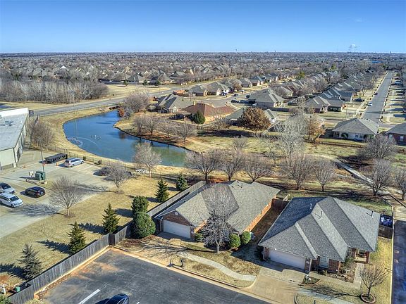 Edmond location in this price point doesn't get much better than this! The covered patio off the rear of the house overlooks the amazing green belt that boasts walking trails and pond with a family of geese that waddle around the fence line. This home is also conveniently located across the street from excess parking that is private to the neighborhood making hosting holidays/parties a breeze. The Villas at Copper Creek offer easy access to Kilpatrick Turnpike & Hefner Parkway as well as a community clubhouse, gated entrance, exercise room/gym, walking trails, pond and playground area. West Field elementary school is located across the street and the middle school is just around the corner. Lawn maintenance is included for front and back yards along with edging and weed eating. The home owner is responsible for the flower beds. This home offers a very functional floorpan with three bedrooms and a flex room that can be used as a study, formal dining or living, playroom etc. The large master bedroom features two closets, walk-in shower, and separate jetted tub. Brand new roof and storm shelter! This is truly a unique property, come see for yourself.