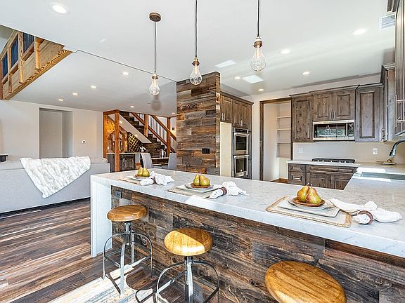 - Kitchen Features: Dishwasher, Range/Oven Gas, Eat In, Disposal, Microwave, Kitchen Island, Breakfast Bar, Walk-in Pantry, Double Oven