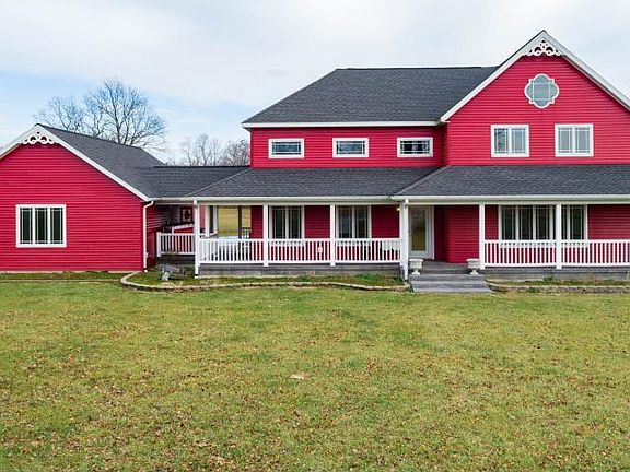 PEACEFUL AND SERENE SETTING ~Nestled on over 19 acres, this custom built country home is a must see! Boasting over 4,400 square feet of living space, this 7 BR, 4 full bath home has so much to offer. The main level includes master suite with large walk in closet, office overlooking the serene pond, and bath with spa-like walk in shower, separate claw foot tub and dual vanity. Large family room with fireplace, large dining room perfect for entertaining family and friends, and kitchen with an abundance of beautiful maple cabinetry, quartz countertops, and high end appliances. Dining area is conveniently located off of the kitchen and also overlooks the tranquil acreage. The upper level has five nicely sized bedrooms and two full baths with granite countertops. Lower level includes large laundry area with âcubbies,â full bath, and bonus âbedroomâ with large walk in/storage closet. Cherry hardwood floors, granite counter tops, maple cabinetry and doors, wrap around porch, 3 car garage, vaulted ceilings, 1.25 acre pond, in ground pool, hot tub, fire pit and 42â x 26â pole barn with lean just add to this amazing home!
