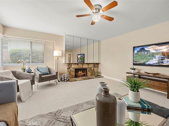 Pristine single level home in desirable Yorba Linda location. Situated deep within the neighborhood, yet close to favorite shopping, restaurants, and parks. Upon entry you are greeted with an oversized living room enhanced by a stone fireplace and corner inset windows that bring the front yard views indoors. The kitchen has plentiful meal prep counter space and an abundance of storage, along with a convenient dining counter. The adjacent flex space is accented by attractive beamed ceilings and is perfect for formal dining or family room needs and encompasses a sliding door that leads directly to the outside amenities. One of the four bedrooms can be closed off for privacy or open, to perfectly lend itself to private office, workout, or playroom needs. The primary suite has direct access to the rear grounds and boasts a private ensuite bath. All bedrooms offer mirrored wardrobe doors and/or cooling ceiling fans. An additional hallway full bathroom and a convenient inside laundry room round out the interior amenities. Step outside onto the private fully covered patio, ideal for friends and family gatherings, or dining in upcoming summertime BBQ's. The raised planters surround the yard, ready to grow your favorite garden veggies and the grassy lawn provides ample green space. A wonderful opportunity awaits!
