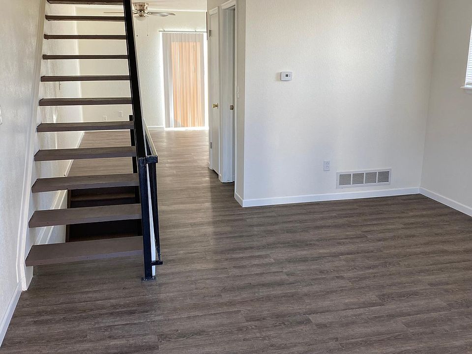 This exceptional 3Br/3BA townhome is located perfectly as the end-unit in a quiet cul-de-sac, right on the Toll Gate trail, next to Summer Valley Park and Cimarron elementary. This home is in the Cherry Creek 5 School District. It is strategically situated between Buckley and Tower, and between Hampden and Quincy. The main level includes a cozy living room with a wood fireplace, a spacious, fully equipped kitchen with a huge eating space with access to a deck for grilling. The upstairs level includes 2 large BR with great views and a full bath. The finished basement unit is FULLY COMPLIANT with large egress windows. It has a spacious BR with a walk-in closet, full bath and a sitting area that can be used for office/playroom/family room, and utility area with a W/D hookup. Amazing self-contained unit. The house is close to everything. I225 and C470 are near, public transportation, restaurants, and shopping are in the immediate proximity. Cherry Creek schools - Cimarron Elementary is walking distance.