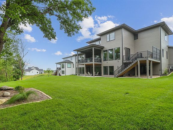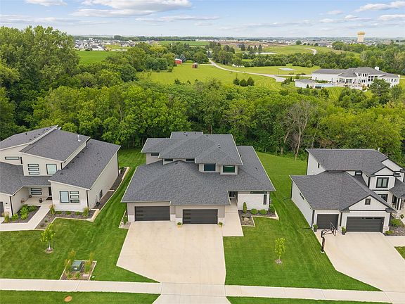 1.5 story custom built walkout home backing to trees with amazing features and almost 6,000 sq ft finished. Enjoy the wooded backyard from the oversized covered deck, second grilling deck and large patio below. 4 car insulated garage with epoxy floors and 35 ft deep 4th bay! Exposed steel beams, LVP flooring entire level except primary bath is tile, and 2 story linear gas fireplace with custom white oak floating shelves highlight the main level. Gorgeous kitchen has huge island with waterfall quartz, full quartz backsplash, 48” Kitchen-Aid built-in refrigerator, 36” 6 burner slide in gas range, electric oven, hood vented to the exterior and Kitchen-Aid beverage refrigerator in oversized pantry. Main level bedroom suite has free standing tub, tile shower, dual vanities and custom closet built-ins with 5 ft island, quartz top and drawers. Double sliding doors open to office with huge windows backing to trees. 2 bedrooms on 2nd level each have walk-in closets and jack and jill bath with separated vanities. Laundry room on main and lower level (washers and dryers included). Walkout lower level has wet bar (refrigerator included), exercise room, electric fireplace with custom white oak floating shelves and 2 bedrooms each with large walk-in closets and full baths. Home has Andersen windows, 2 water heaters, 2 hvac systems, irrigation and passive radon system. Waukee Schools!