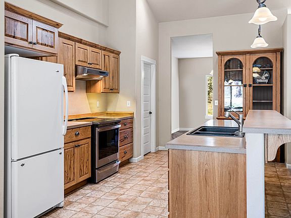 - Breakfast Bar, Fiberglass Stall Shower, Kitchen Island, Laminate Counters, Open Floorplan, Pantry, Primary Downstairs, Shower/Tub Combo, Vaulted Ceiling(s), Walk-In Closet(s)