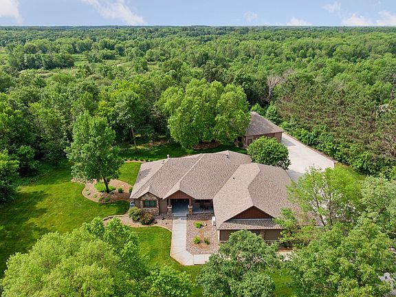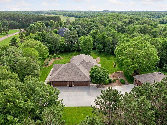 Exceptional 7 acre Executive home on the St. Francis River. High-end finishes throughout the entire property. Chef's kitchen w/stone surfaces, professional stainless steel appliances, formal and informal dining room. Hickory flooring, 2 sided fireplace, wonderful primary bedroom and attached bathroom and main floor laundry. Bug free 3 season screened in porch. Walkout lower level with in floor heating, wet bar with dishwasher, fridge and microwave, family room, pool/rec room, two additional bedrooms with walk through bath. New roof, windows and siding recently updated. Attached fully finished 6 car garage, floor drains, in floor heating and ductless mini split. Fully finished/heated 32x36 detached 4 car garage with 10 ft. door clearance for trucks, boats or extensive work shop area. This home checks off all the boxes - Welcome Home!