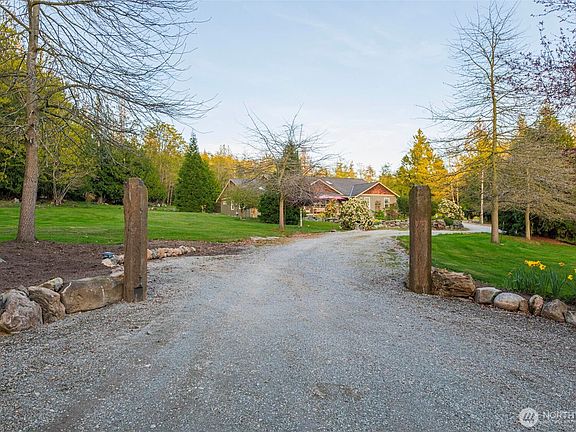 Imagine breathtaking sunsets from the front porch or on one of your benches in this incredible park like 4 acres. River birches & soft grass allow you to explore an area the local deer call home. The home boasts two ensuite primary bedrooms with a third bedroom & sitting room/dressing room/office. You'll find three bathrooms, skylights & vaulted ceilings. Quality craftmanship and updates will leave you wanting to do nothing but enjoy your small estate in coveted Bow. The shop is 36x32 with 220 & can house 4 cars or a wide array of toys and projects, including a loft for additional storage. The greenhouse is already producing fruit trees and tastes of the season. RV parking & unofficial plans for an ADU complete this estate in Magic Skagit!