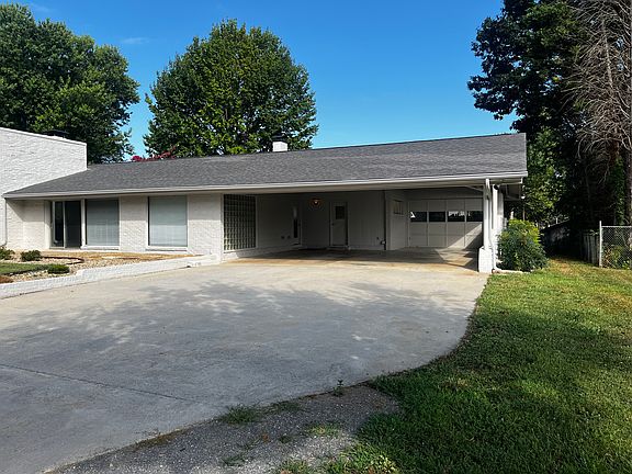 Beautiful mid-century modern brick rancher in west Maryville. This home has yacht quality mahogany woodwork. It has 3 bedrooms, 1 1/2 new baths, gourmet kitchen with new stainless appliances and granite countertops, new washer and dryer/laundry room, walk-in shower, large wood-burning fireplace, open living room and dining room, vaulted ceilings and new flooring throughout, 900 square foot, finished, heated garage, 3-car carport, covered patio in rear of house. Natural gas heat, range and water heater.