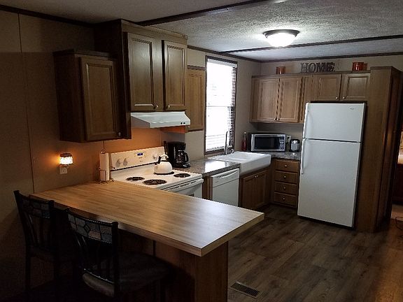 2014 Giles Mobile Home - 48x16 with 2 bedrooms and 1 full bath. Washer/dryer hook up and upgraded windows. Home comes with living room couch, recliner, breakfast bar chairs, tv entertainment center, coffee table and area rug; however, if you'd prefer no furniture we can negotiate taking the furniture out. The kitchen offers a full size refrigerator, dishwasher and oven. The home can stay on the current lot, but the lot owner does not allow dogs. Landlord is great, friendly and responsive. Current lot rent is $125.