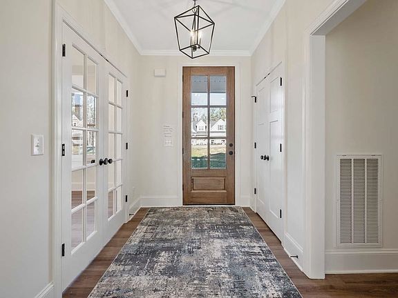 Ready Now. No HOA. No City TAXES. This well apointed new home features a spacious family room with gas-log fireplace, custom built-in and stunning 12 feet-3 panel sliding door that opens to the screened porch. Designer kitchen with quartz tops, includes a large Island with cabinets on both sides and walk-in pantry. There’s a breakfast area and a dining room with french doors (or perhaps you prefer an eat-in kitchen and office setup). LVP flooring in 1st floor living areas. Crown moldings and 7 1/2" Baseboards adorn this home. The 1st floor has a 2nd bedroom and the main bedroom with LVP flooring and bath with 2 sink vanity, tile floor, floor to ceiling tile shower. Upstairs are 2 more bedrooms, a full bath and a large bonus-room. Lots of storage space in this home plus `575 sq.ft. of walk-in attic storage. Phase 3 of Ironwood New Homes includes 16+Acres of Deeded Open Space abutting the north side of River Club Way. Enjoy a Country Lifestyle with approx 12-20 minutes drive to 2 different Shopping Centers, sundry services, restaurants, Wake Forest downtown and the major shopping district located Hwys 1 and 98.
