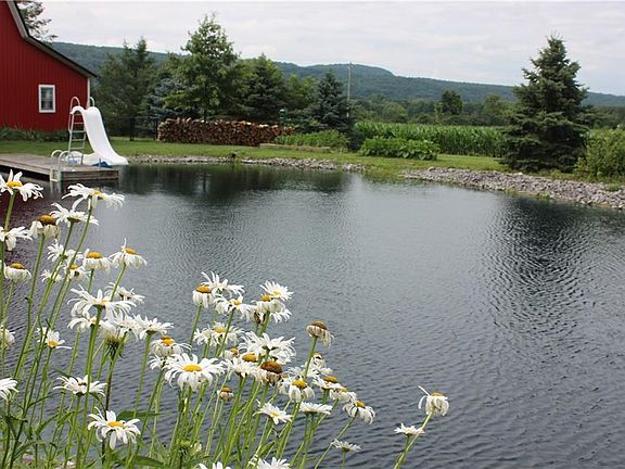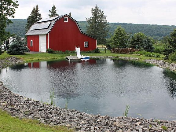 NEW TO THE MARKET! County living at its best. This beautiful Cape Cod has been meticulously maintained and needs to be toured to totally appreciate the beautiful setting. Enjoy the master suite upstairs with an inviting soaking tub. The downstairs has new hardwood floors the flow throughout the house. The wrap around deck is so spacious for enjoying your cookouts this summer. The partially fenced in yard it great for a play area or your pets! Endless possibilities for what you can do in the very large 3 bay barn! On the roof of the barn are solar panels you are not going to believe what their electric bill is! Behind the barn is a Beautiful rock lined swimming pond with a deck and a slide! You have to come and see this relaxing peaceful house and all it has to offer.