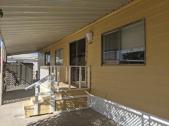 Two bedroom three bath manufactured home. It is 1152 sq ft, Covered patio front and back, storage on site, two master suites with their own bathroom and walk in closet. Laundry with stackable washer and dryer. Steps up to the unit. Split bedroom. All appliances in the kitchen open to great room. Back yard is fenced in. Pets upon approval. No cats. Owner pays for water and sewer. Tenant pay all other utilities.