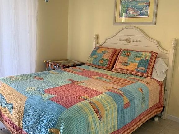 Walk right up to this ground floor beautiful 2bd rm 2 bath, granite counter tops throughout, ceramic tile throughout, stainless steel appliances, washer and dryer, freshly painted, fully furnished down to forks and spoons, ready to move in, beautiful large community pool, and grass grounds to play your favorite game of bocce. Covered front and rear patios with relaxing rocking chair or Adirondacks. Short walk to the beautiful sugar white beach.