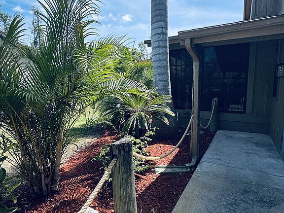 Screened lanaiEnclosed lanaiUpdated lightingLandscaped green spaceContemporary tile finishesMature palmsCeiling fans