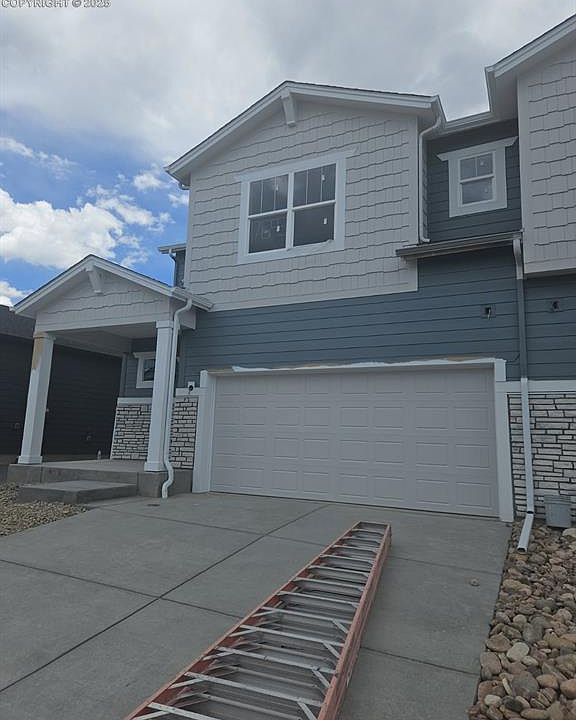 Ready in June. Mountain 2-story plan with 2 car garage in the new Monument Junction Cadence Collection neighborhood. 3 bedroom, 2.5 bath home. Cottage exterior. This home is one side of a duplex. Kitchen features Shaker-style maple cabinets in an espresso stain, elegant Silver Falls granite countertops, island, pantry, and stainless steel appliances including a gas range and refrigerator. Off of the great room there is an under-stairs storage closet and separate coat closet. The upper level master bath showcases a shower with seat and sleek frameless shower surround, and double sinks. The master bedroom is separated from the additional bedrooms creating a quiet, serene space. The upper level hallway includes an area which can be used as a pocket office/work zone. Home comes equipped with air conditioning, radon mitigation system, blinds in the bedrooms and baths, and smart home package. Home is located in a covenant controlled community. Seller incentives available.