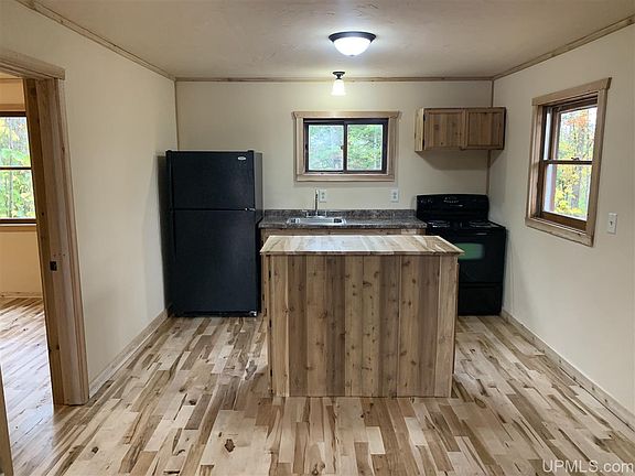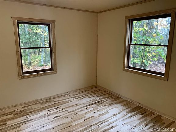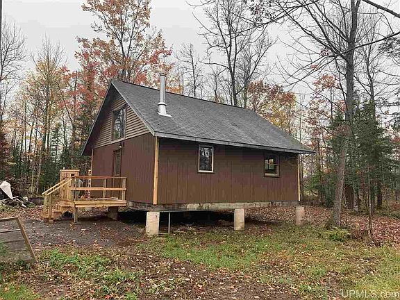 Exceptionally redone cabin on 40 acres just outside of Bruce Crossing. The entire interior of this cabin has been redone in the summer of 2020. New hardwood flooring throughout the main floor & new carpeting in the loft area. The ceiling of the cabin was redone with repurposed corrugated steel to give it a rustic look. New woodstove and stainless chimney. If you want a nice clean place to get away, use as a hunting camp or to move away from the city this is it. Outhouse on property has composting toilet.