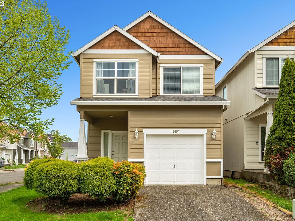 Lovingly maintained and move-in ready Craftsman on a corner lot in the Autumn Meadows community. The Great Room layout features an open kitchen with a large island and dining area, and living room with a gas fireplace - perfect for entertaining or quiet nights at home. All 3 bedrooms have vaulted ceilings & lots of natural light. Master suite features a bath with double sinks and a generous walk-in closet. Convenient location close to the Elmonica MAX station, Nike, Intel, shopping and more. This wonderful neighborhood has it's own playground, community garden and walking trails.