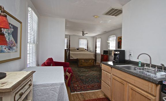 Very nice studio apartment with a lofted bedroom located in the heart of Downtown Charleston at 177.5 St Philip (between Cannon and Morris Streets). One block from King Street within walking distance of the College of Charleston, MUSC and the Charleston School of Law. Perfect for one person or a couple. Hardwood floors throughout. Living room, kitchen and bathroom downstairs. Bedroom is lofted upstairs. Please respond with any questions or to set up an appointment to view the apartment. Video tour available - please send email or phone number. Lease is for 12 months: August 1, 2020-July 31, 2021 Parking on the street with residential parking permit. No washer/dryer. Utilities and thermostat are shared with other apartment in the house. Please send an email address for an application.