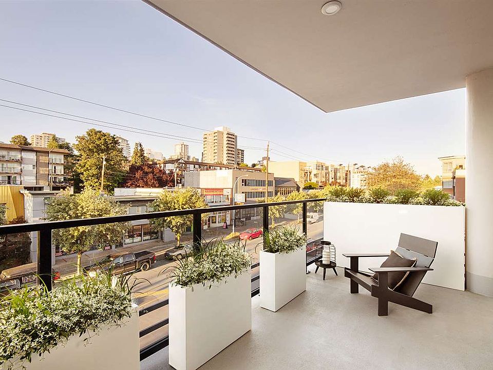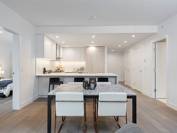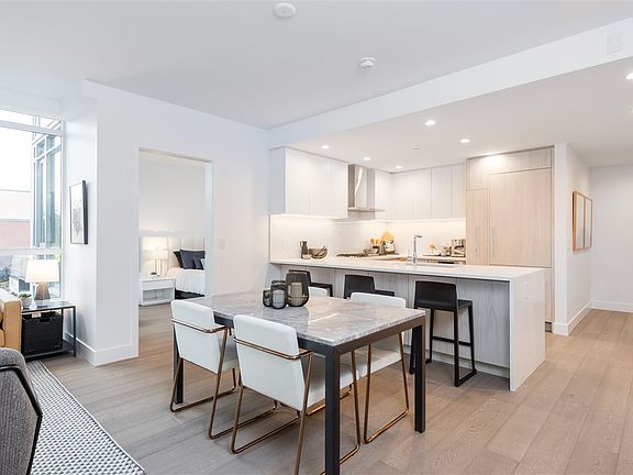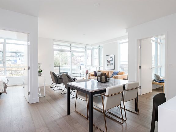 The FINAL home at West Third by Anthem Properties. ***GST included on final home*** Spacious 2 Bed, 2 Bath plus Den and air-conditioning for year-round comfort. Northeast corner home with views towards Central Lonsdale, North Shore Mountains and The Lions! Concrete construction, 147 sqft. covered balcony with personal water, gas and electricity hookups for a seamless integration between indoor and outdoor living. Kitchen includes built-in pantry, a full-size integrated Bosch appliance with gas cooktops, and speed ovens. The Primary Bedroom includes a walk-in closet with custom organizers, spa inspired ensuite bathroom including floor heating, a floating dual sink vanity, large frameless glass shower. 1 park + 1 locker incl. Additional parking available.