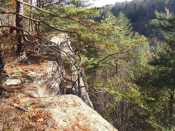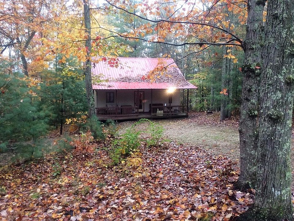 One and half story cabin with full, walkout basement on 1.19 acre wooded lot with cliffs and overlooking the Daniel Boone National Forest. Open main floor with living area, lots of windows, kitchen with appliances, bath with shower, wood tongue and groove floors. Large loft on second level overlooking the main level. Peaceful wooded views with county water and septic. Full basement with laundry room and lots of possibilities to complete additional bedrooms or family room. Just minutes from Cave Run Lake. Make this your new getaway!