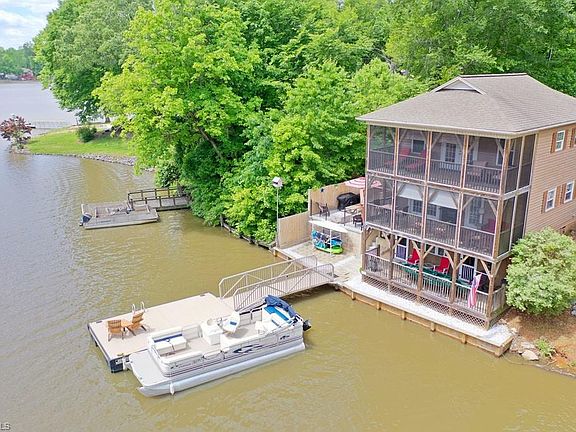 BACK ON THE MARKET. Seller took this gem off the market to add additional parking. Looking for a great waterfront lake house retreat with all the amenities and space you need, without a price tag that breaks the bank? Then you have to see this fully furnished 2 BR 3 bath home on the lake. Den and bonus rooms used as 2 extra bedrooms in basement. Fish from your porch! Entire upper floor is master suite. Includes sitting room, office, private screened porch. 10x20 alum dock with lifetime warranty. Kitchen has granite c tops, built-in table & benches, includes fridge. Fans on porches. Recent improvements make this home move in ready!