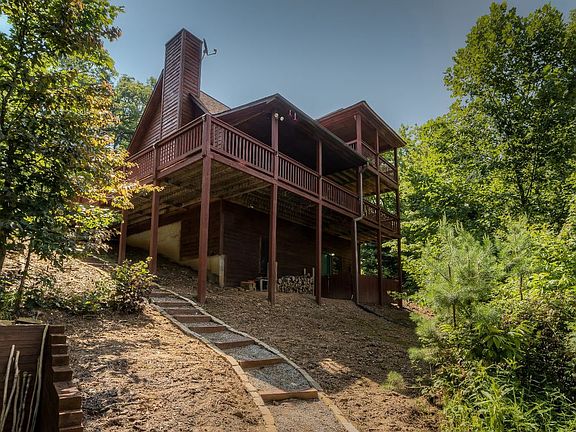 CABIN IN THE WOODS! EVERYTHING YOU THINK MOUNTAIN LIFE SHOULD BE! Rustic home tucked in the woods with year round mountain view and beautiful wooded lot and wraparound decks and porches to enjoy it. Nice outdoor fire pit for the cool nights or roasting hotdogs. Two levels with bedroom and bath on each. Laundry closet on main floor. Unfinished basement is stubbed for third bath. Open great room with cathedral ceilings, fireplace, and wood floors throughout the home. Very private and convenient to two lakes, Blue Ridge, Blairsville, and Murphy. Public utilities. Easy access. Furniture negotiable.