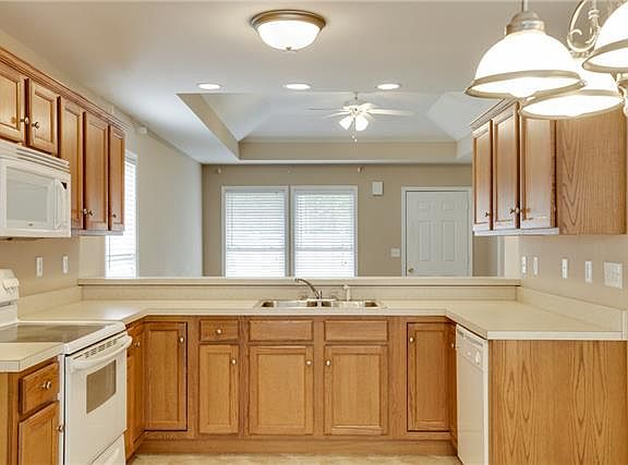 One Owner All Brick condo. Open Kitchen with oak cabinets, white appliances & a view of living room, Trey ceilings in Living room & Master Bedroom, Covered front porch and back deck, covered parking with large storage area.