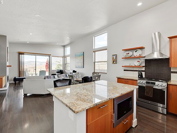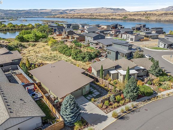 One level living at its best!  This 2-bedroom 2 bath home at Lone Pine Village in The Dalles has meticulously been cared for and updated. The floor plan is open with many windows and high ceilings which provide for a light inspired space.   From the kitchen to the outdoor patio, you can enjoy entertaining and cooking with family and friends.   The updated and efficient kitchen has a new stainless steel LG 4 burner gas range, w/ air fryer and a new French door Refrigerator. There is a generous sized granite island for cooking and gathering around.   The primary bedroom has a large walk-in closet w/built in shelves, a heated tiled floor in the bathroom plus a tiled shower and private toilet room.   Good sized 2nd bedroom can be an office or a guest room and 2nd bath is adjacent to it.   Step out the slider door to embrace the outdoor patio which overlooks the green space to the west.   The patio has Gas hookup for your BBQ and 220 power for your hot tub if you desire. Throughout the year, the home stays cozy with mini- spilt cooling/heating and a gas fireplace. Fenced yard with extensive and mature landscaping and for ease of maintenance, a Hunter drip irrigation system.  The lot feels quite private amongst your neighbors. Enjoy walking the low traffic neighborhood on the paths through the common areas and being close to the Columbia and its river views.    Easy access to I -84 and all the amenities of The Dalles close by.The laundry room is large with plenty of storage, workspace and sink next to the washer and dryer. The 2-car garage is oversized with plenty of room for storage or projects.This home is move-in ready and just the comfortable modern home you have been looking for in a desirable location.