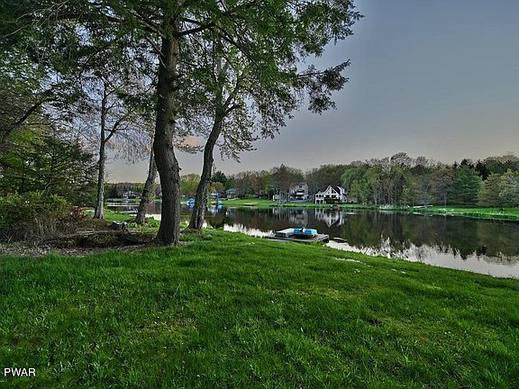 LAKEFRONT SANCTUARY on a private lake in a four-season amenity filled community in The Northern Poconos, just two hours from the NYC and Philadelphia areas. Relax in the family room in front of the wood burning fireplace looking at the lake through the wall-to-wall windows and sliding doors. This 5-bedroom, 3 bath home has been completely renovated including a new roof, new electrical, high-end bathrooms, kitchen and CENTRAL A/C. The outdoor space and views are amazing, there is a screened in porch, a heated 3 season room and a deck. Master Bedroom Suite and laundry are on the main level. The heated garage is currently used as a game room. Perfect for full time or vacation living. If peace and serenity is what you are looking for, you've found it here