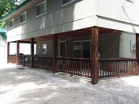 This great home is a 2 bed plus the bunk room that will hold 3 king size beds or divide to make two more bed rooms The kitchen in on the ground level with large storage , eat in kitchen, family room with gas log fire place . easy to heat and low energy costs. 2 full baths and a central room for a library or office space. This sits on 2 lots for a total of 1.24 acres in the Small community of Johnston Sub division. 5 minutes to 3 ramps to the lake. The garage is Huge Poured concrete 72x36 sq ft. 2 bays are 18x10 6 inch high and one bay 12'6high and 18 feet wide for your RV. The far left bay is set up with gas fireplace and all in one heat and air unit extra insulation for your man cave for pool table and fish tales. All garage door openers are commercial grade and garage doors are all insulated. The air compressor will stay with the property. This is the perfect home for retirement seasonal living or full time living. Priced to sell.