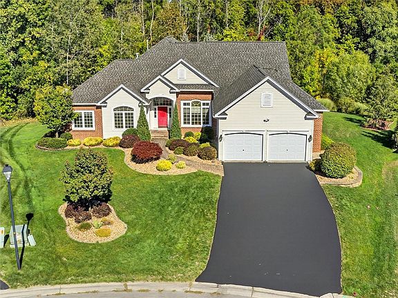Great Home, Custom Built Ranch in 2005 on Cul-de-Sac backs to Private Lot, Mature Trees, Pines, Landscaping & Pond - Very Pretty, Open Floor Plan 2656 SqFt, 3 BDRM, 3.5 Bath Plus Office off Foyer with Closet - Two Story Foyer Entrance, Marble Floor, Open to Great Room (20x24) Hardwood Floors through Dining, Kitchen and Office, Soaring Cathedral Ceilings, Recessed Lighting, Gas FPLC, Built in Cabinets & Shelves, Big Picture Window Overlooks Vinyl Deck & Railings, Backyard is Picturesque Setting - Front Dining Rm, Tray Ceiling, Recessed Lights & Crown Moldings, Big 33' Kitchen & Eat-in Area, Cathedral Ceilings, Recessed Lights, 36" Oak Cabinets & Crown Molding, Black Quartz Counters, Island, Desk Work Area & Wall Cabinets, Walk-in Pantry, Built in Double Oven & All Appliances included W/D too-Big Eat in Area, Recessed Lighting, Angled Bay with French Doors to Deck, Additional Back Transom Window & Extra Large Great Room Windows Really Lets the Sun Shine! 1st Floor Laundry Room & Powder Room with Tile Floors Near Garage Entrance - Private Primary BD in Back, Tray Ceiling, Recessed Lights, Sliding Glass Door to Deck, 2 Walk in Closets, En Suite Bath, Tile Floor, 2 Separate Sinks, Corner Jacuzzi Tub, Shower & Private Toilet Room with Linen Closet, 2 BD off Front Hallway & Full Bath with Tile Floor & Tub/Shower - Big Full Unfinished Tall 12 Course Bsmt, Egress Window, Painted Floor, Furnace/Central Air 2005, Water Heather 2019, Roof 2005, Whole House Generac Back-up Generator, Full Bath, Tile Floor, Tall Vanity & Shower - Underground Sprinklers too! Brick and Vinyl Exterior, 2 Car Garage with Side Bumpout Storage Space, Two Story Covered Entrance, Stone Paver Walkway & Landing, Nicely Landscaped. Delayed Negotiations Until October 7th, Tuesday @ 3:00 PM.