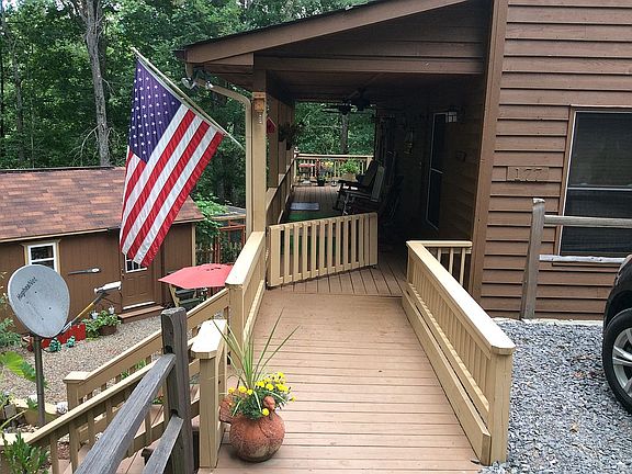 Chalet in the beautiful North Carolina Mountains. Located in a private setting, only 20 minutes from Blue Ridge, GA & Murphy, NC. This home features multiple outdoor living areas with French doors opening onto deck from dining and living room. Living & dining rooms have soaring ceilings, hardwood floors, a wood-burning fireplace. Kitchen features a large pantry, stainless appliances and breakfast bar. Master bedroom is on second floor with large walk-in closet, and full bath. Second bedroom is on main floor with a full bath across the hall. Finished basement has bedroom, laundry, full bath and large living area which opens up to a fenced yard with 12 x 24 workshop and enclosed garden area.