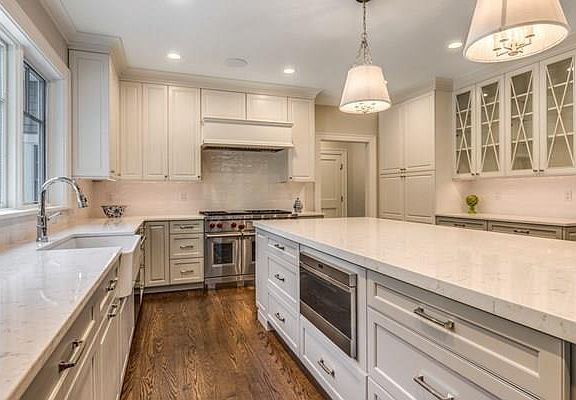- Kit Dscrp: Pantry, Flooring - Hardwood, Kitchen Island, Stainless Steel Appliances, Recessed Lighting, Lighting - Pendant, Crown Molding