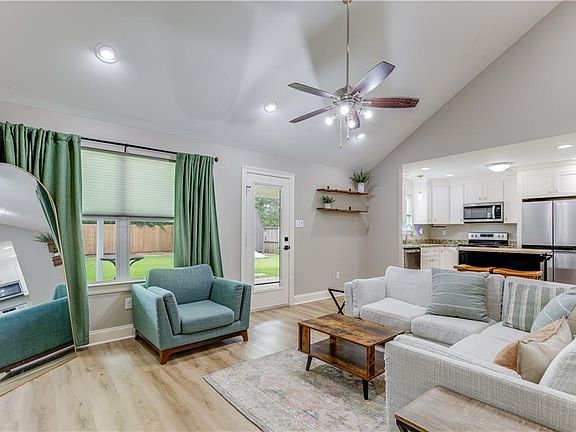 Located in highly sought-after St. Charles Parish—home to a top-rated school district—this almost new 3-bedroom, 2-bathroom home offers comfort, functionality, and style. Step through the foyer into the spacious living room featuring a striking sloped ceiling reaching up to 15 feet. Just off the living area, you'll find a generous kitchen and dining space complete with granite countertops, white cabinetry that extends to the ceiling, and ample room to entertain.