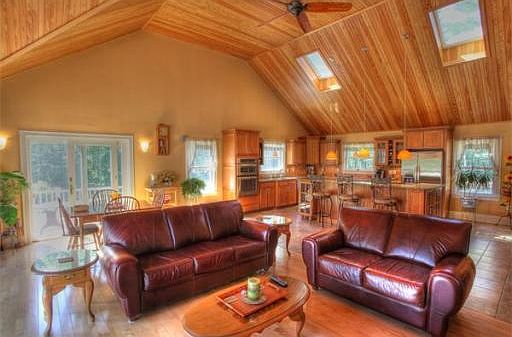 Absolutely gorgeous Custom Contemporary Ranch. When you walk in the front door you will fall in love! From the wrap-around farmers porch you enter the "Great Room" with its wood cathedral ceilings and remote skylights, 10 foot granite center island kitchen, tiled backsplash and stainless steel appliances, corner gas fireplace, dining area and sliders to large deck, Jacuzzi, inground pool and Beautiful landscaping. Spacious Master with cathedral ceilings, sliders to back deck, private bath and generous closets. 2 additional bedrooms and a large bath with laundry. Lower level family room boasts built-ins, cedar closet and plenty of storage. Meticulously maintained yard with multiple garden beds, flowering perennials and fruit trees, over looking a reservoir where you can watch the swans go by. Features include: C/A, Central Vac, Generator, 2 car Garage, 2 driveways, irrigation....and so much more!