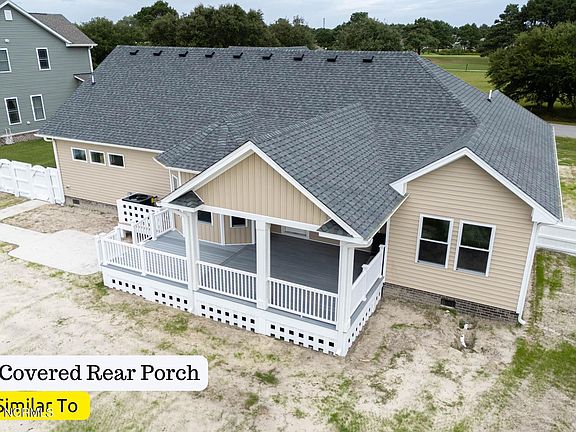 Here is your chance to own a Brand-New Luxury Home in Carolina Club, one of the best communities in Currituck County. This 2025 Custom Stick Built has luxury features and Golf Course Frontage. The home is scheduled to be completed in June 2025, giving you a limited time to pick out your own paint colors, flooring, appliances, and other options. The 4-bedroom home with minimal steps offers 2 primary ensuites. Enjoy the privacy of a split layout and quality construction as each room has a unique feature including Vaulted Ceilings, Trey Ceilings, and Double Closets. The luxurious ensuite on 1st Floor offers an oversized bedroom featuring Trey Ceiling, 2 Big Closets including a Large Walk In Closet.1st floor Ensuite Bathroom features custom TILE Shower, Double Vanities and Closet. The center of the home has a massive great room with 12 ft cathedral ceiling opening to the LARGE Kitchen with a farm sink, Island, Soft Closed all plywood Cabinets, Stainless Steel Appliances, and granite countertops. Additional features throughout the home: Real Hardwood floors in Living Areas, Carpeted bedrooms and stairs, upgraded light and plumbing fixtures. Outside you will find 500 sq feet of porches with compositive decking, a brick tower, and LOW Maintenance UPGRADED vinyl siding. Plus, a 600 sq foot 2 car garage. The property is nearly 1/2 an acre in the X flood zone. The home is convenient to schools, shopping, OBX Beaches, and the waterpark. A 15-minute drive to the Outer Banks beaches and 50 minutes to Chesapeake VA. Beautiful Carolina Club Golf Course Community with fantastic amenities including a big Pool, Tennis Courts, Marina, Boat Ramp, and Clubhouses. Natural Gas is available in subdivision. Some features showed in pictures are Paid Upgrades and available at extra cost.