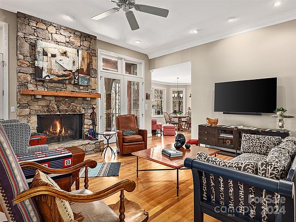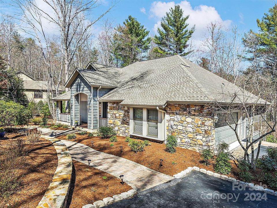 Nestled on the 13th fairway of Tom Fazio’s mountain masterpiece golf course is this stunning Champion Hills home. Lush and low-maintenance landscaping leads the way to the covered rocking chair front porch. As you enter into the open floorplan with a beautiful stone fireplace you’re pulled outside to the expansive covered porch complete with its own fireplace. Soaring ceilings, natural bark siding and wooded golf course views will leave you in awe. The lower level is perfect for guests with a private covered entrance, two bedrooms each with an ensuite bath, and plenty of living space. Come enjoy mountain living at its finest.