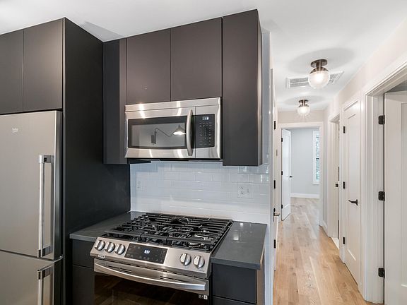 Stunning, condo quality, 2 bedroom + 2 full bathroom home. Apartment is just under 900 SF and features a thoughtful layout with bedrooms on opposite sides of the apartment. Large bedrooms with custom closet built-ins. Primary bedroom includes en-suite bathroom. Open kitchen and living room layout. The kitchen features modern cabinetry and stainless steal appliances. Washer/Dryer located in unit! Central air-conditioning, forced hot air and hardwood floors throughout. Just a block away from the airport T station and less than .4 miles to Maverick.