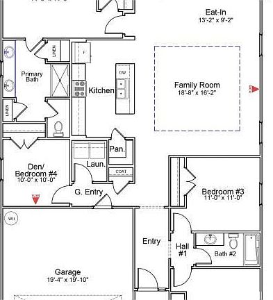 The Gwinnett is a single-story home featuring four bedrooms and two full bathrooms. The primary bedroom is split from the secondary bedrooms and has a large walk-in closet, five-foot walk-in shower, dual linen closets and a water closet. The main living area is open with a spacious trayed ceiling great room, eat-In area, and kitchen. The kitchen includes a large island and walk-in pantry. The living area is extended to the outside with a fantastic, covered porch. Additional upgrades to this home are blinds, gutters, garage door opener and LVP flooring throughout the entire home.