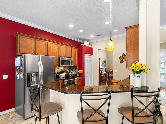 Screened-in poolLarge upstairs bonus roomElegant quartz countertopsSerene nature preserveFountain and hot tubCrown moldingCentral vacuum system