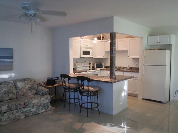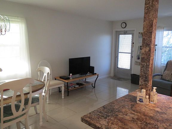 This is a 55+ community. Immaculate corner unit with central a/c. Kitchen and bath have been redone. Tile throughout. Furnished. Located next to the community patio. Close to the bus stop, swimming pool and gym.