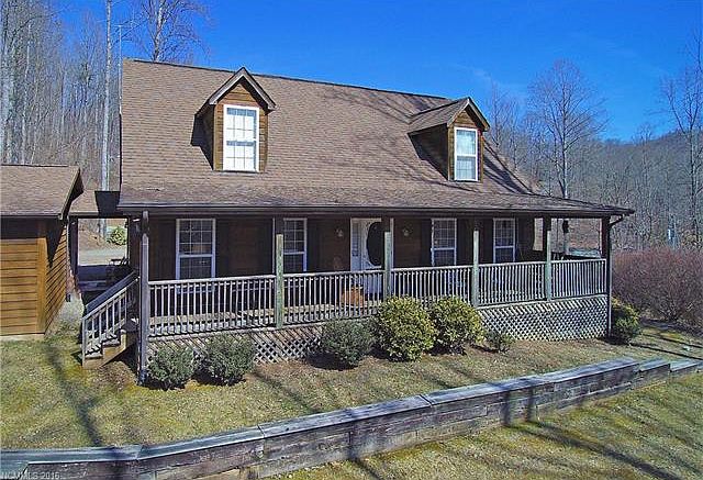 REDUCED!! ALL OFFERS CONSIDERED!!Nestled in the mountains of WNC, this two story cape cod style cabin w/cedar siding, 3 bedroom, 2.5 bath, covered front porch, master suite on main, spacious kitchen and dining area & great room, huge upper level bedrooms w/storage, attached double car garage and all located just minutes from Waynesville & Sylva with easy access.