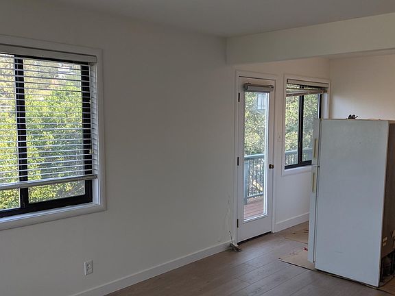 This beautiful and light filled 2 Bedroom, 1 Bath apartment with newly updated wood laminate flooring, led lighting and freshly painted walls is available October 1. The apartment is located in a quiet nine unit building near downtown San Rafael in wonderful Gerstle Park. Nestled in the trees and surrounded by open space. Double pane windows with 2" levolor blinds throughout. The master bedroom has a large walk-in closet. The kitchen is equipped with an electric stove, fridge and updated under cabinet lighting. There are 2 off street parking spots. 1 carport and 1 parking lot. Move in is first month rent $2300 + $2300 deposit. Please have verifiable income 3x monthly rent and great credit and rental references. Available October 1 Move in is $4600 Large deck + Great view 2 parking spots - (1 carport, 1 uncovered) Laundry in building Water and garbage included No smoking building Sorry no pets **Please do not disturb tenant / Showing by appointment only**