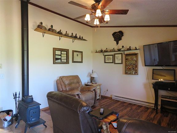 Cute and cozy cabin-style home with one-level living on beautifully wooded 2+ acre lot. Woodstove, open-concept kitchen, high ceilings with fans, skylight, freshly painted bedrooms, and tons of rustic charm indoors. Covered deck with built-in seating. Lights and pull-down shades overlook groomed yard and serene open valley. Matching 2-car garage with woodstove, lighted work space and pull down stairs to upper storage. Fire hydrant nearby, close to Divide Fire station for low insurance rates.