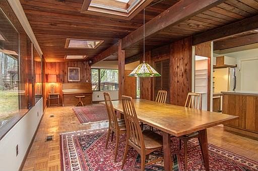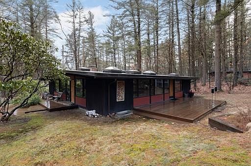 The best value in Carlisle, this classic mid century modern home is a perfect combination of nature, privacy, and style, placed on an idyllic 2 acres of woodland and lawn. Impeccably maintained by its owner for decades, enjoy the open floor plan, living room with wood burning fireplace and cozy built ins perfect for a chilly afternoon reading by the fire. The kitchen with built in desk and pantry, family room, and dining room, all have walls of glass to let in plenty of natural light. Three generous bedrooms, including the master, share the Jack and Jill bath, and offer panoramic views of the gorgeous back and side yards. Skylights everywhere and a 2 car oversized garage completes this home, the perfect place for first time homebuyers and downsizers alike! Carlisle prides itself on its conservation efforts and award winning schools. With a simple yet stylish downtown, and just a short drive to Routes 3, 225, and 495, this is the ideal location for the commuter who also wants serenity.