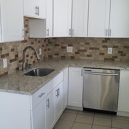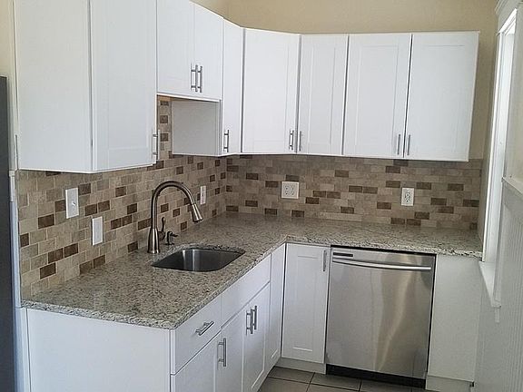- Kit Dscrp: Countertops - Stone/Granite/Solid, Flooring - Stone/Ceramic Tile, Kitchen Island, Stainless Steel Appliances, Remodeled, Wainscoting