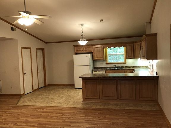 JUST REDUCED!! Convenient, easy living 2 bedroom, 2 full bath ranch style home. Perfect starter home or retired couple. Features include spacious kitchen with plenty of cabinet and counters space, refrigerator, dishwasher, oven, and microwave. Each bedroom ( 2 or master bedrooms) has private full bathroom and plenty of storage in closets. Laundry room includes washer and dryer. Two porches to enjoy this peaceful private setting with in town convenience! Owner financing option with down payment.