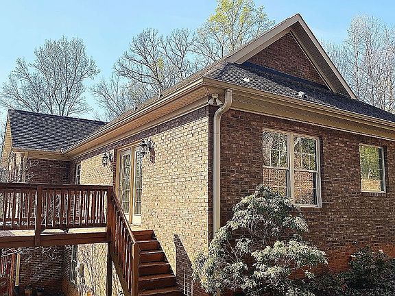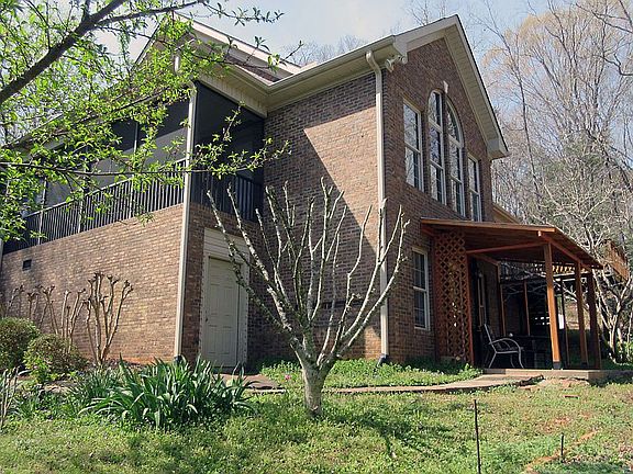 The house features hardwood floors in the living room, hall, and one bedroom. The living room is very open, with a vaulted ceiling and a large picture window which gives lots of natural light. Granite countertops include the bar-top island. There is a wood-burning fireplace, and access to a screened sunroom, as well as a utility room with washer/dryer and sink. The master suite has a door out onto a private deck, 6' jetted tub, separate shower, and double vanity, as well as a large WIC. The other two bedrooms on this level are good-sized and give easy access to a second full bathroom. The separate lower level of 558 sqft has private entry and includes a combined living/kitchenette area, as well as a full bathroom with shower. Perfect as a "granny annex" or even for renting. The property includes a big fenced garden area, many fruit trees, and a large shed.