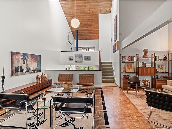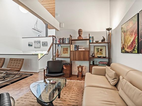 Discover urban living at its finest in this exquisite townhome designed by architect Robert Macon! Step into the entryway where soaring ceilings & handsome custom built-ins set the tone for the interior. The breathtaking great room boasts a tongue & groove pine ceiling, upper clerestory windows & unique built-in benches. Gleaming hardwood floors lead to the dining area & custom kitchen where functionality meets elegance w/slate counters & exquisite wood cabinetry w/ glass front doors. Relax in the upper loft area w/ a handmade ceramic glazed firepot & an enclosed porch. A private guest suite beckons w/ a walk-in closet & an elegantly modernized bath. The primary BR w/ gorgeous ensuite is adorned w/ vaulted wood ceilings, oversized windows & a custom closet system for stylish organization. The LL den & office present a separate entrance on Gibbs St., showcasing adaptability for potential use as a home business or in-law suite. The finished yoga studio is a haven for wellness, graced by extensive built-in cabinets, ambient lighting & a modernized half bath. Nestled in the Grove Place Preservation District, this home embodies the fusion of downtown living & timeless artistic design!