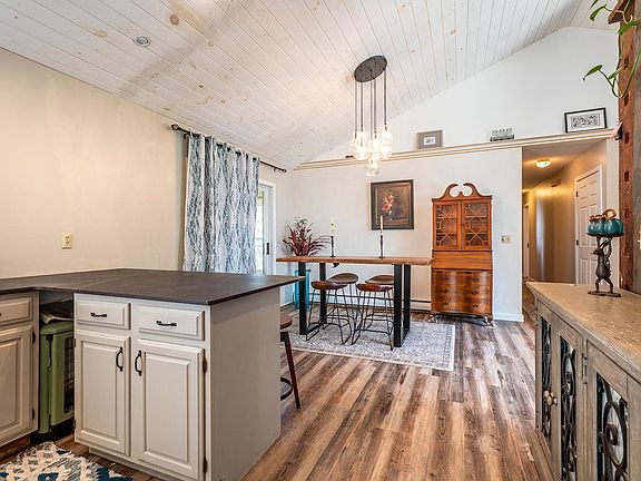 This charming, raised ranch is very bright, open and airy. It was renovated between 2020 and 2024. The stunning light filled living room with vaulted ceiling, features an exposed brick chimney with a woodstove. The kitchen on the main level has updated countertops and appliances. The kitchen and dining room all look out over the back yard. 2 bedrooms and 2 bathrooms on the main level, additional bedroom and bathroom on the lower level. Updated heating system, newer roof and deck. Sunroom with a swim spa. Two car attached garage. All measurements are approximate. Neighborhood, short distance to town. Town road. Newer propane heating system, newer roof with solar panels.